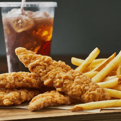 With fries & drink. Crispy on the outside, tender and juicy on the inside! Our hand-breaded chicken tenders are seasoned to perfection and fried to golden brown. Served with your choice of dipping sauces, these tenders are a delightful treat for both kids and adults alike. Perfectly paired with our house-made fries or a fresh garden salad. Indulge in the ultimate comfort food experience!