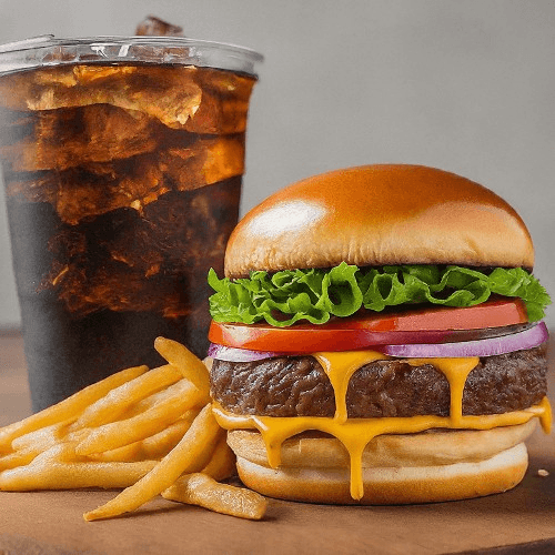 Silky beef patty grilled to perfection, topped with melted cheese, crisp lettuce, and ripe tomato on a toasted bun. A signature classic done right, delivering bold, satisfying flavor in every bite.