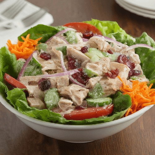 Juicy chicken served over crispy fresh greens with sweet dried cranberries, and creamy house-made dressing. A signature salad that’s fresh, flavorful, and delightfully satisfying in every bite.