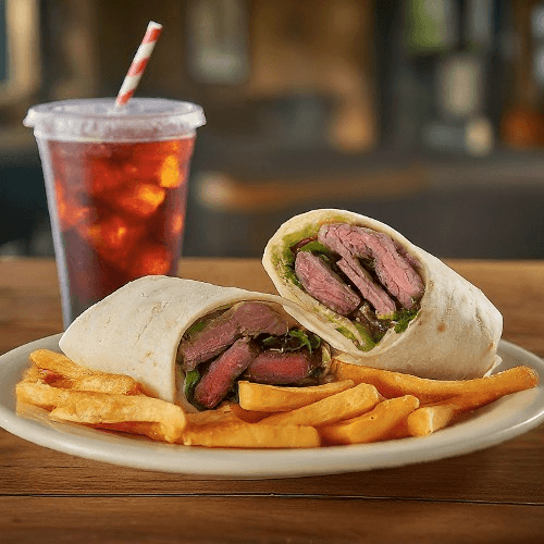 Choose your favorite wrap—steak, grilled chicken, crispy tenders, savory fish or fresh veggies—paired with your choice of side and a refreshing drink. A signature meal that’s satisfying, flavorful, and perfect for any craving.