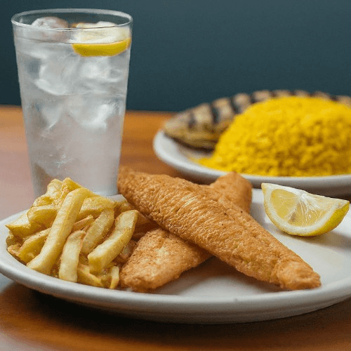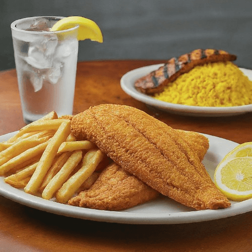 Buttery tilapia, fried to a crispy golden or grilled to perfection, paired with your choice of side and a refreshing drink. A signature dish featuring fresh, local fish bursting with flavor in every bite.