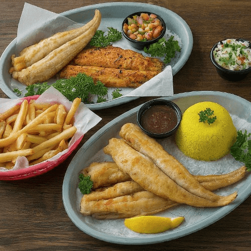 Succulent swai fillet, fried to a crispy golden or grilled for a smoky, savory bite, served with your choice of side and refreshing drink. A signature seafood favorite made with fresh, local ingredients.