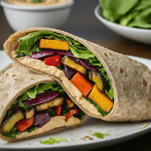 A crispy medley of fresh vegetables, ripe tomatoes, and creamy house-made dressing, all wrapped in a soft tortilla. A signature wholesome favorite that’s vibrant, flavorful, and satisfying in every bite.